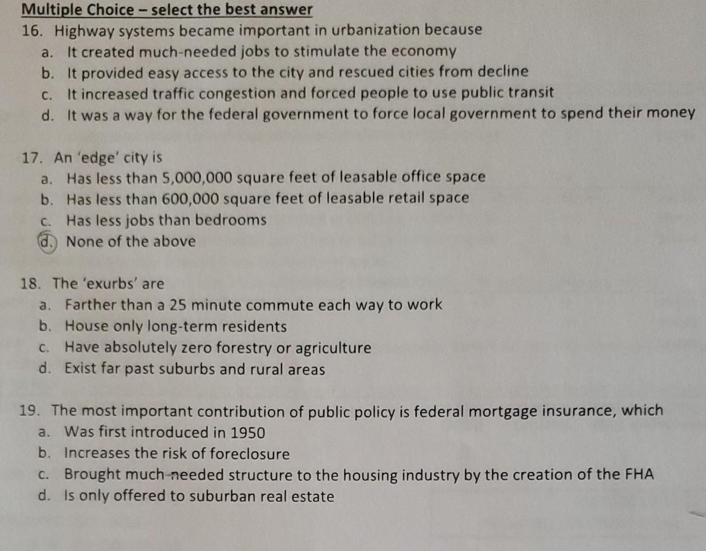 Solved Multiple Choice Select The Best Answer 16 Highway Chegg Com